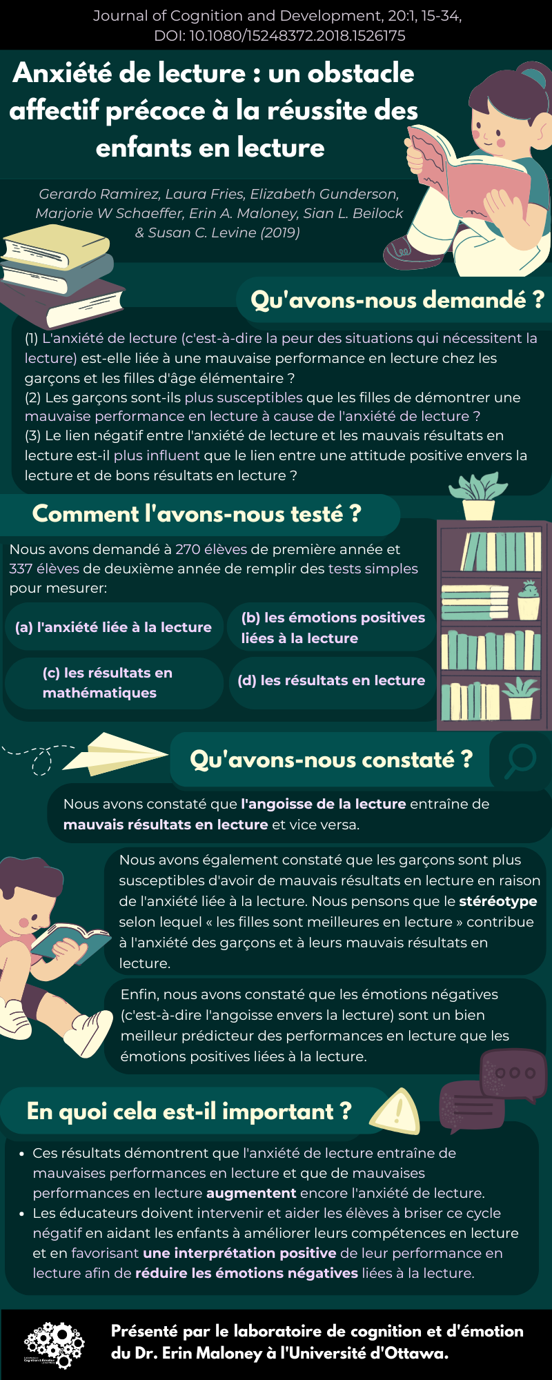 1) L’anxiété de lecture (c’est-à-dire la peur des situations qui nécessitent de lire) est-elle liée à une mauvaise performance en lecture chez les garçons et les filles d’âge élémentaire ?